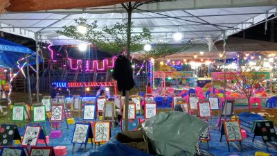 Para pedagang dan pengusaha sarana permainan anak pun ketiban rejeki. “Alhamdulillah, dagangan kita malam ini habis semua”, ucap Nadar, penjual Mieso gerobak di arena Expo Pembangunan.