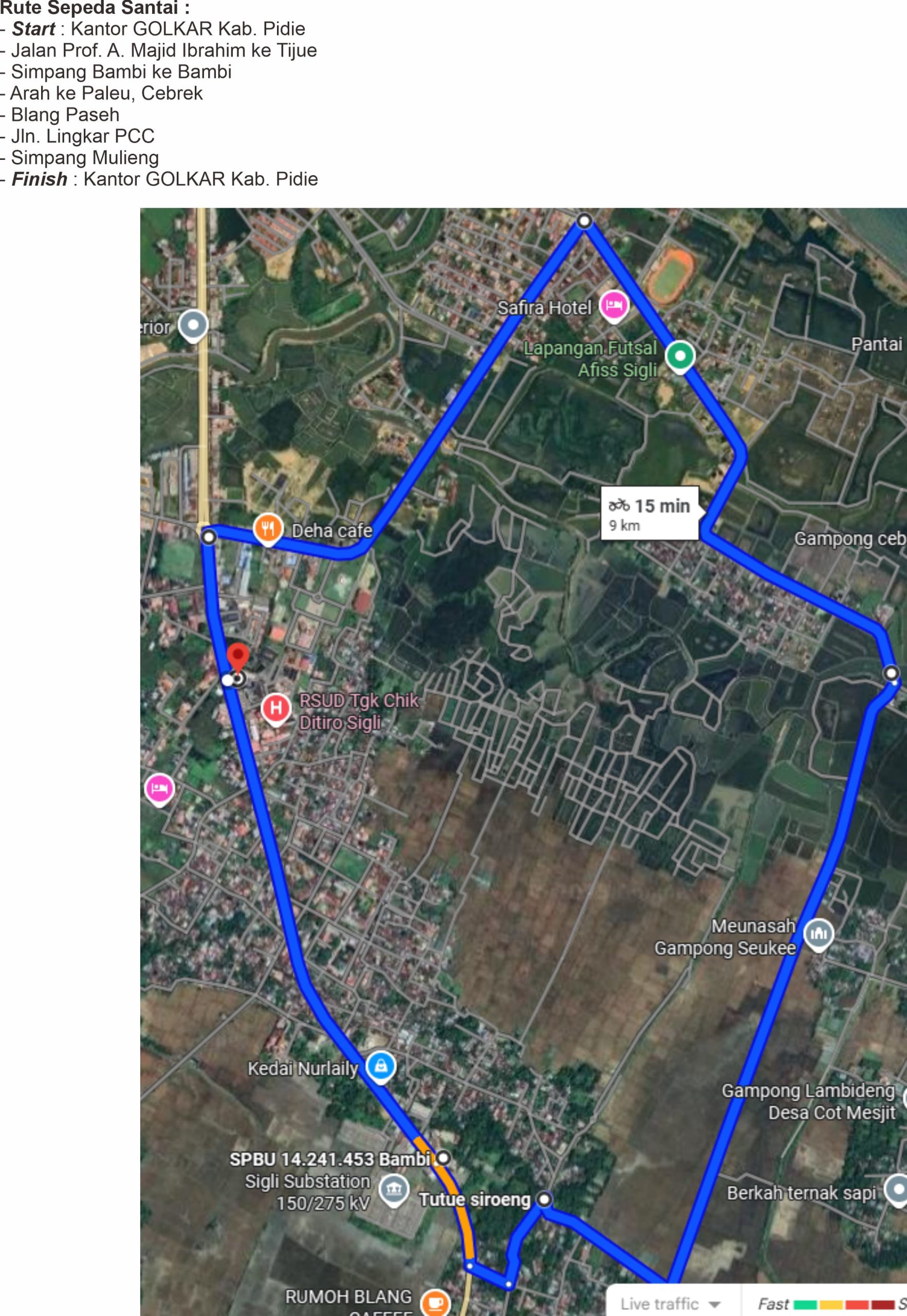 - Start dari Sekretariat Golkar, menyusuri Jln. Prof. A. Majid Ibrahim ke arah kota.
