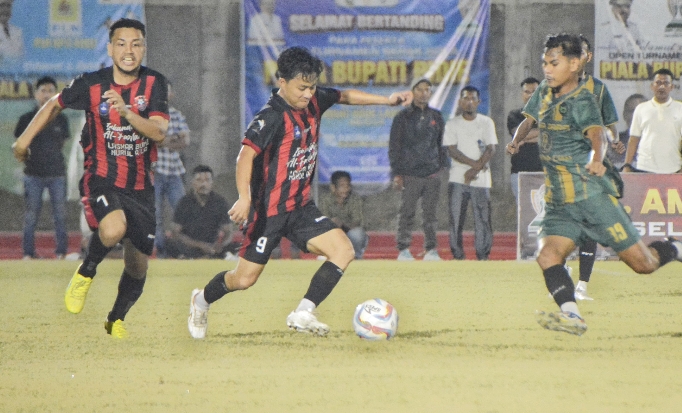 Sigli,haba RAKYAT I Dihadapan Bupati Iskandar Usman Al Farlaky, yang khusus datang menyaksikan pertandingan, Tim Aceh Timur Al Faraky FC (kostum merah) harus tunduk untuk CST United Pidie Jaya (Pijay)(kostum hijau) 1-0 dalam babak delapan besar Piala Bupati Hari Jadi (Hajad) ke-514 Pidie yang berlangsung di Stadion Blang Paseh Kota Sigli Minggu (05/10/2025) malam.