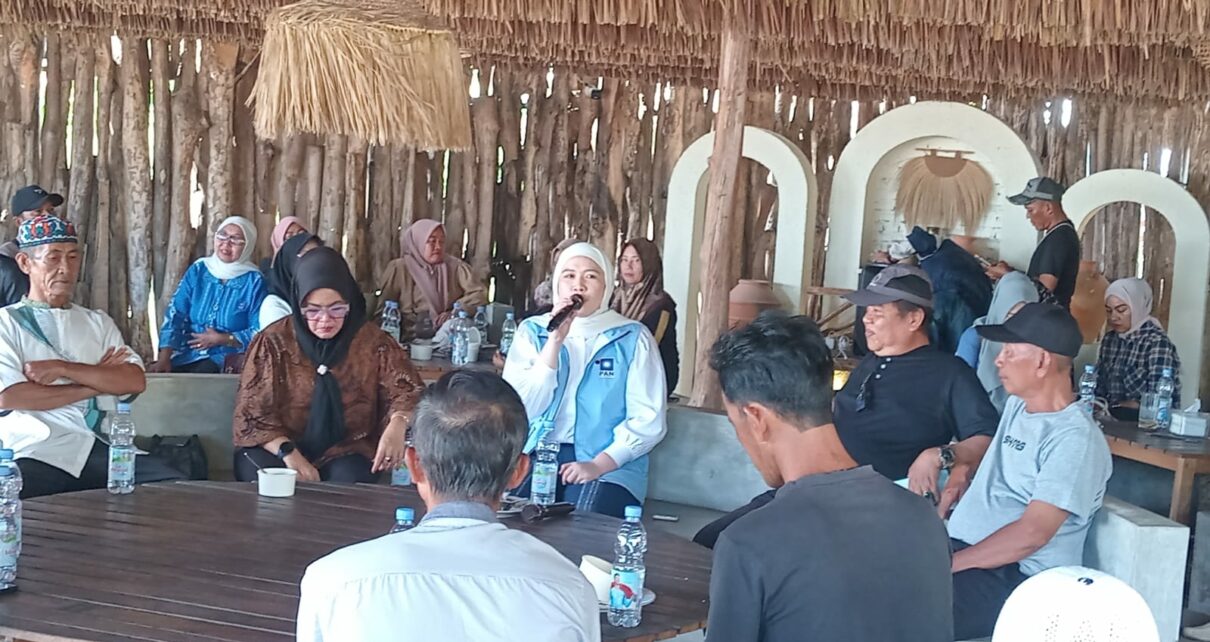 Wakil Ketua III DPRD Lampung Selatan, Bella Jayanti, S.I.Kom., M.B.A, saat bersilaturrahmi bersama Pengurus Ranting PAN Se-Kecamatan Kalianda dan Rajabasa, Acara digelar di Sanggar Beach, Kalianda. Foto : Wiji Lastini/haba RAKYAT.