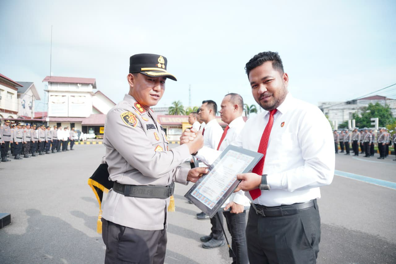 Penghargaan yang diberikan itu sebagai bentuk apresiasi atas dedikasi dan kerja keras personel yang telah melampaui beban tugasnya. Adapun personel yang menerima penghargaan yaitu Iptu Yudha Prasatya, S.H, Aiptu Azhari, S.E, Aipda Tommy Satria Lubis, Iptu Arizal, S.H, Brigpol Chaidir Bachtiar, S.Sos dan Brigpol Firman Fatwa, S.Sos.