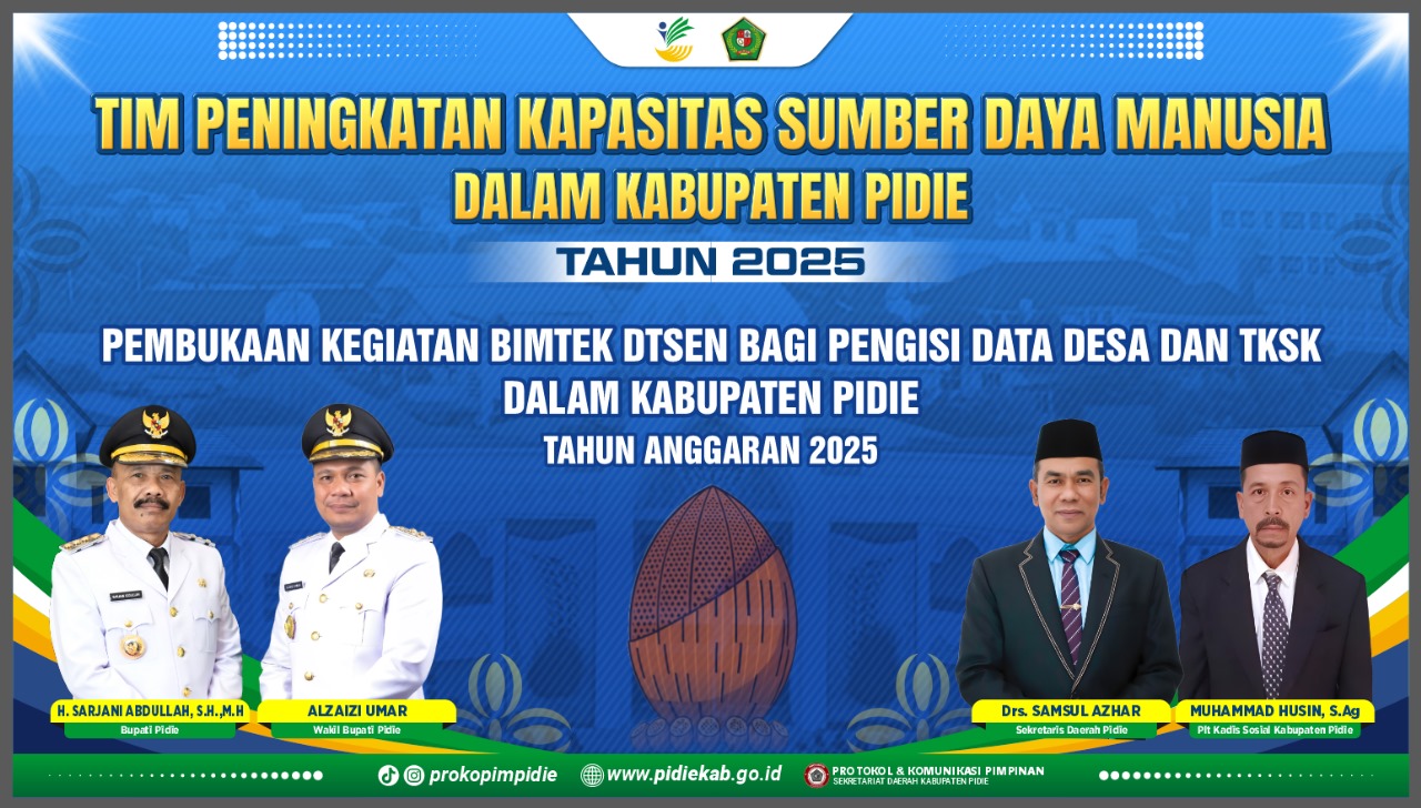 Kegiatan yang diselenggarakan oleh Dinas Sosial (Dinsos) Kabupaten Pidie, Senin (03/11/2025) di Oproom Setdakab tersebut, bertujuan untuk meningkatkan kualitas data sosial dan ekonomi di Kabupaten Pidie.