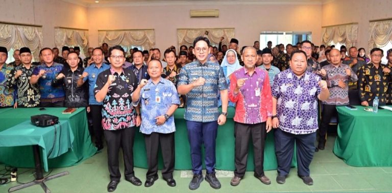 Acara tersebut dihadiri Plt Inspektur Kabupaten Anton Carmana, Kepala Dinas PMD Erdiyansyah, Kabag Tapem Setiawansyah, para camat, serta ratusan peserta Bimtek.