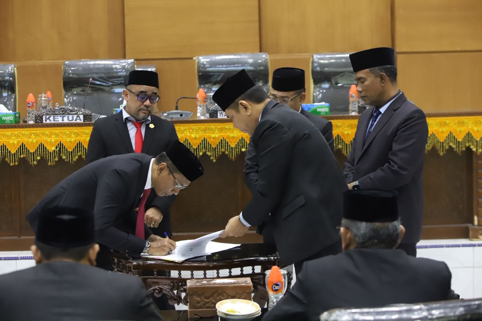 Rapat paripurna yang berlangsung di Ruang Sidang Utama tersebut, dipimpin langsung oleh Ketua DPRK Pidie, Anwar Sastra Putra, S.H., yang didampingi oleh Wakil Ketua I, Teuku Zulkarnaini, S.P., dan turut serta Sekwan, Miswar, S.Sos., M.M.