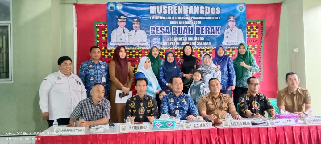 LAMPUNG SELATAN – haba RAKYAT l Pemerintah Desa Buah Berak, Kecamatan Kalianda, Kabupaten Lampung Selatan, menggelar Musyawarah Rencana Pembangunan Desa (MusrenbangDes) Tahun Anggaran 2026, bertempat di Balai Desa Buah Berak, Selasa (28/10/2025).
