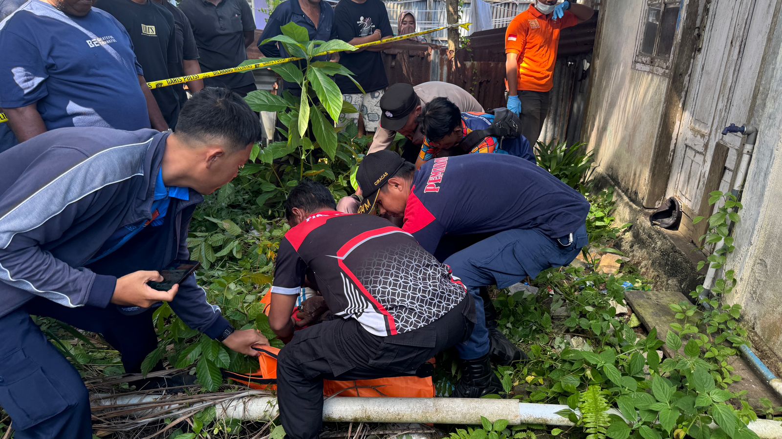 Kecamatan Johan Pahlawan, digemparkan dengan penemuan seorang pria yang sudah tidak bernyawa pada Sabtu 20 September 2025 siang, yaitu warga Gampong Ujung Kalak, Dusun 2 Samudera Lorong Ikhlas Dalam, ditemukan dalam posisi telungkup dan tersandar di pintu belakang rumah warga sekitar pukul 14.30 WIB. Foto : Mardi/haba RAKYAT.