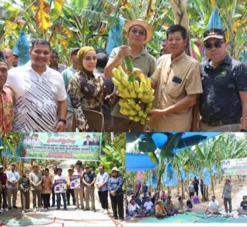 Bupati Tapanuli Selatan (Tapsel) H. Gus Irawan Pasaribu menghadiri panen perdana pisang kelompok tani Gerhanas di Desa Sipange Godang, Kecamatan Sayurmatinggi. Foto: Rahmat Nduru/haba RAKYAT.