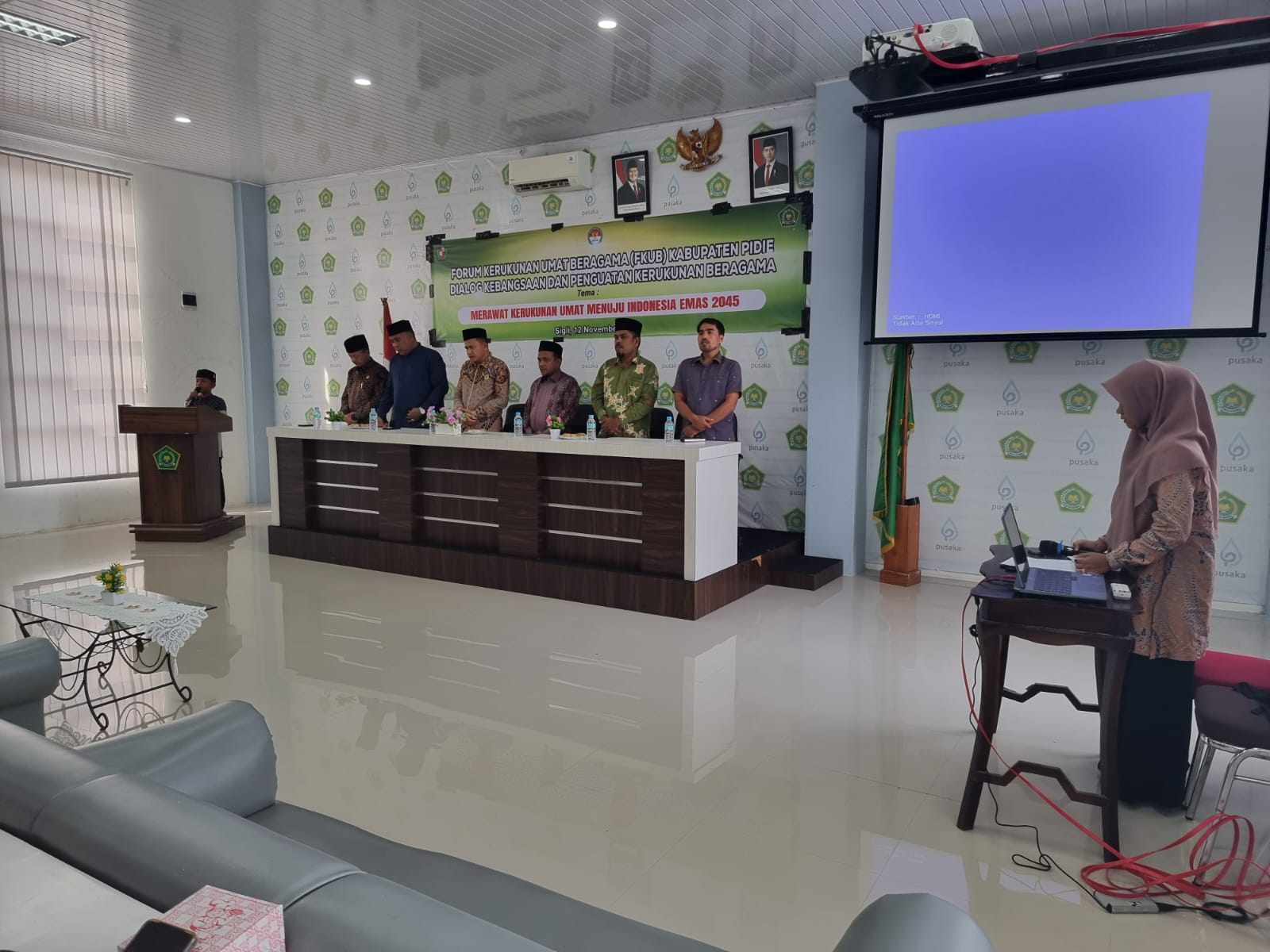 Sigli,haba RAKYAT I Forum Kerukunan Umat Beragama (FKUB) Kabupaten Pidie menggelar dialog kebangsaan dan penguatan kerukunan umat beragama bagi para pemuda sebagai langkah membumikan kerukunan umat beragama dalam menyongsong Indonesia Emas tahun 2045.