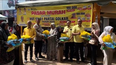 Aceh Besar, Haba Rakyat- Dewan Pimpinan Daerah (DPD) II Partai Golkar Aceh Besar menggelar pasar murah di Kantor DPD II Golkar setempat, di Gampong Lambaro, Kecamatan Peukan Bada, Minggu (5/10/2025). Kegiatan ini dalam rangkaian memperingati Hari Ulang Tahun (HUT) ke-61 Partai Golkar.