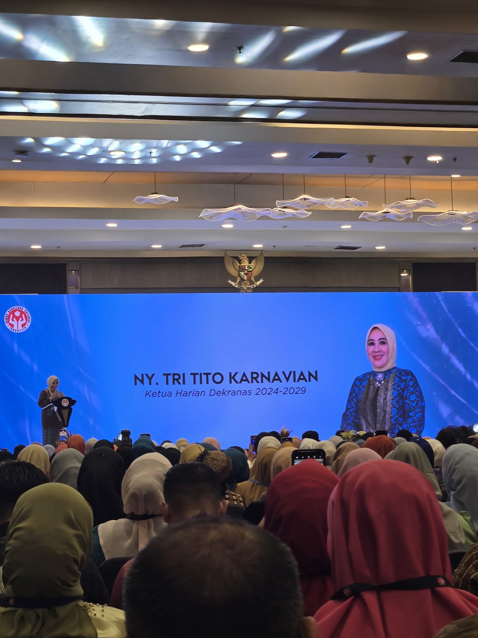Dalam sambutannya, Ketua Harian DEKRANAS, Ny. Tri Tito Karnavian, juga menyampaikan permohonan maaf karena pelaksanaan program Kriyanusa tahun 2025 terpaksa diundur ke tahun 2026 akibat situasi yang tidak memungkinkan.