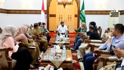 Gubernur Aceh, Muzakir Manaf didampingi SKPA terkait menerima kunjungan calon investor dari Blackstone Malaysia di Meuligoe Gubernur Aceh, Selasa (4/11/2025). (Foto/ hR/ Ist)