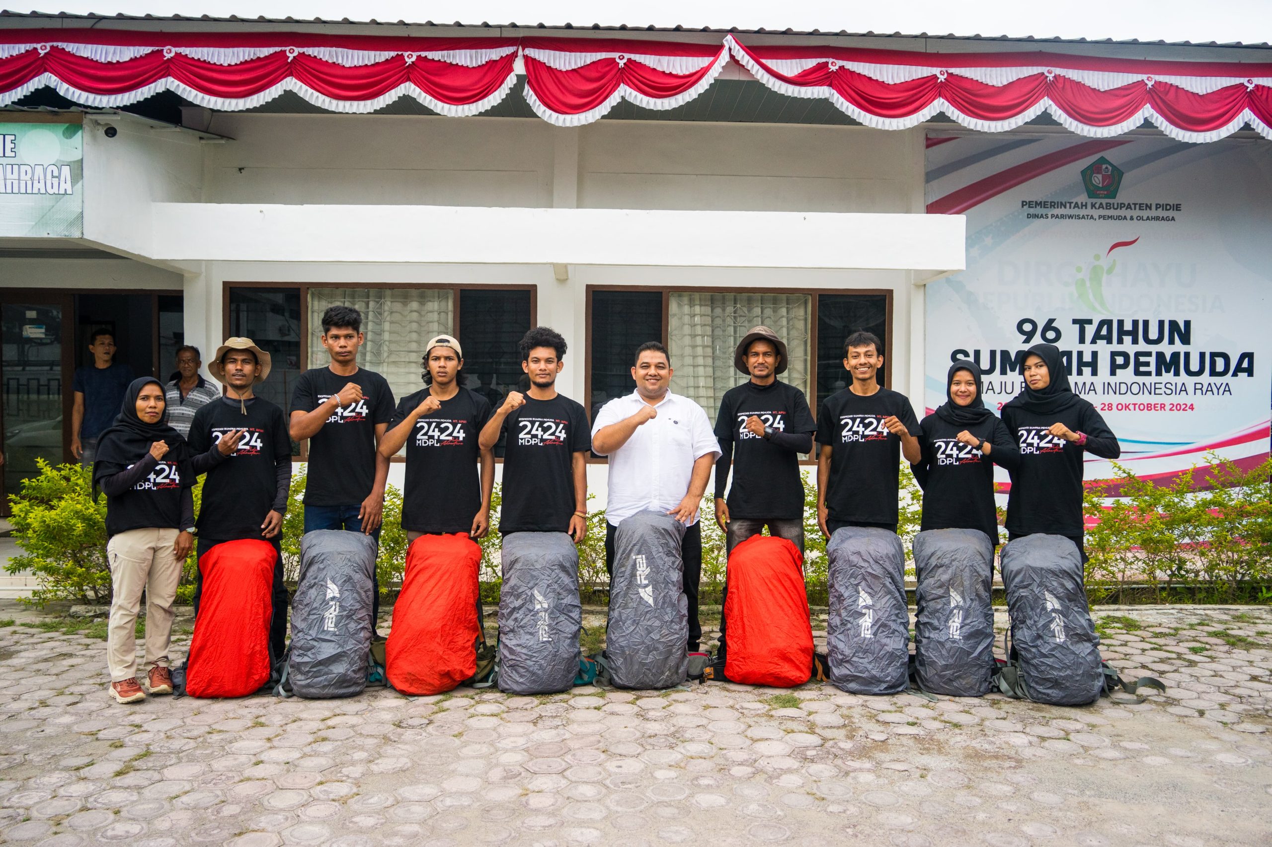 Sigli,haba RAKYAT I Pemerintah Kabupaten Pidie melalui Dinas Pariwisata Pemuda dan Olahraga (Disparpora) melepas tim Ekspedisi Merah Putih Sumpah Pemuda 2025 yang akan menuju puncak Gunung Apui Peut Sagoe, Kecamatan Geumpang, Pidie.