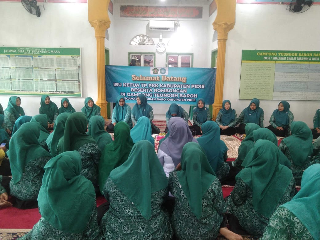 Sigli,haba RAKYAT I Ketua Tim Penggerak Pemberdayaan dan Kesejahteraan Keluarga (TP-PKK) Kabupaten Pidie, Ny. Rohana Sarjani, S.TP., melakukan kunjungan pembinaan dan silaturahmi ke Gampong Teungoh Baroh Bambi, Kecamatan Peukan Baro, Rabu (22/10/ 2025).