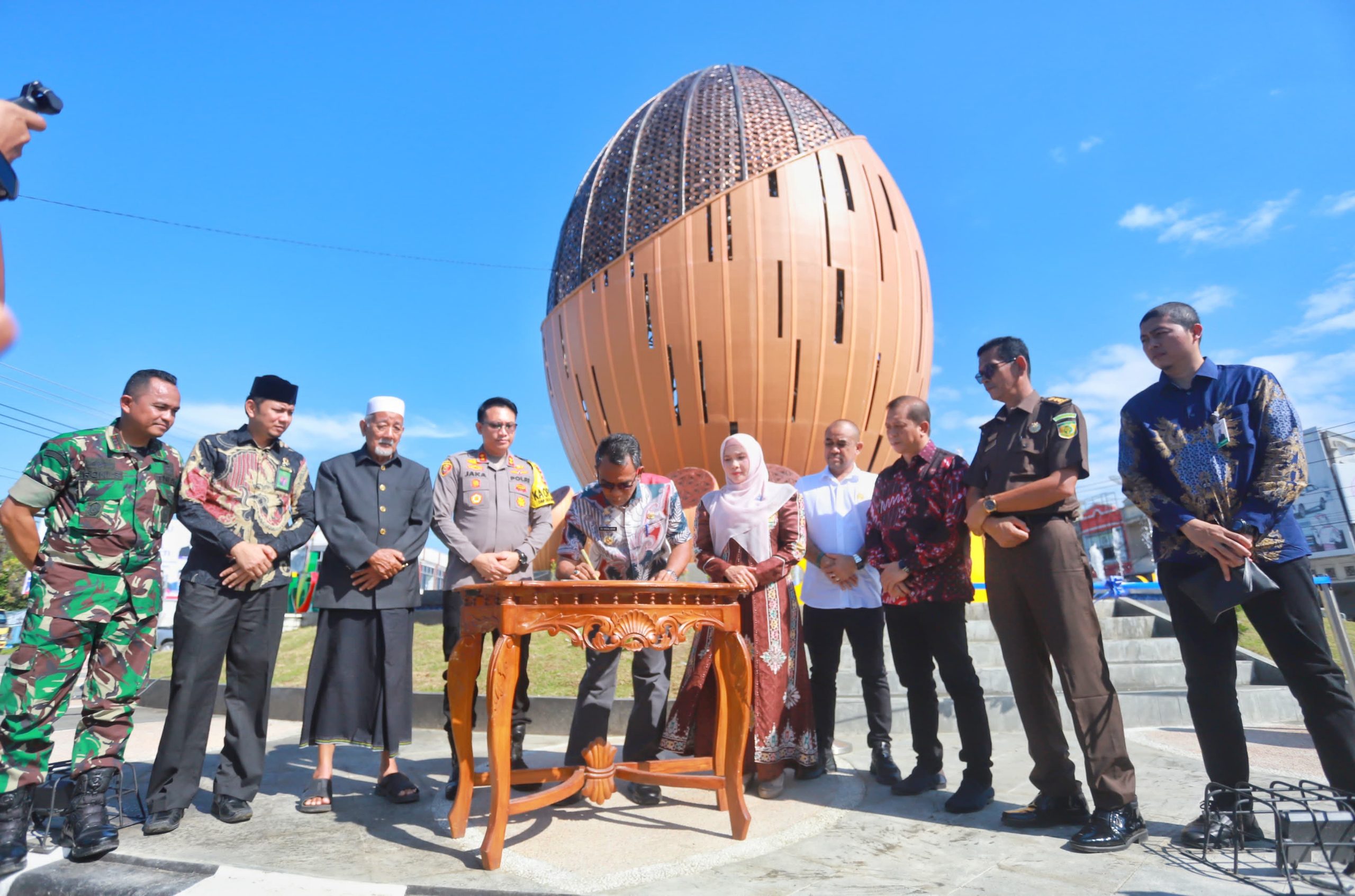 Sigli,haba RAKYAT I Pj. Bupati Pidie, Drs. Samsul Azhar didampingi Pj. Ketua TP-PKK, Ny. Saptati Rengganis, S.P., dan unsur Forkopimda meresmikan Tugu Aneuk Mulieng, di bundaran simpang empat Sigli, Kamis (02/01/2025) pagi.