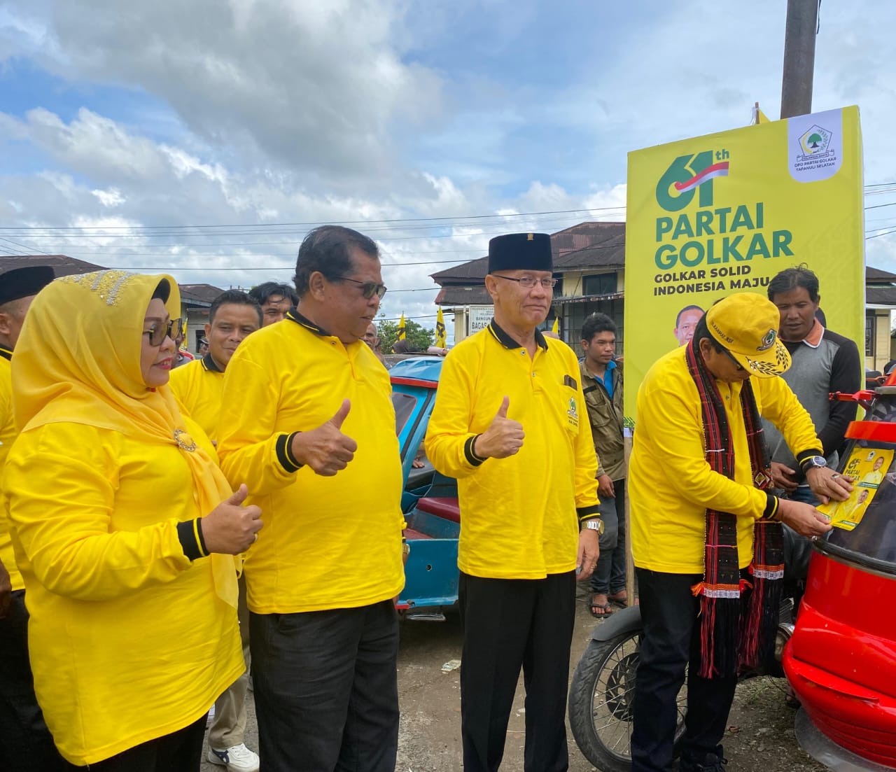 TAPANULI SELATAN – haba RAKYAT l Kedatangan Ketua DPD partai Golkar kab Tapsel di kelurahan Bagas Nagodang Sipirok di sambut langsung oleh Tokoh adat sipirok bapak Edward Siregar gelar Sutan Parlindungan suangkupon siregar dan Di ULOSI dalam rangka pembagian paket sembako Gratis kepada pengemudi tukang becak (Betor) Sipirok, pada hari ini kamis 16 Oktober 2025.