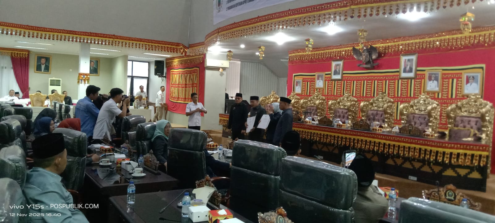 Rapat paripurna yang digelar di ruang sidang utama DPRD itu dipimpin oleh Ketua DPRD Erma Yusneli, didampingi Wakil Ketua I Merik Havit dan Wakil Ketua II A. Benny Raharjo. Dari pihak eksekutif, hadir Wakil Bupati Lampung Selatan M. Syaiful Anwar mewakili Bupati Radityo Egi Pratama.