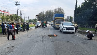 Lokasi lakalantas di ruas jalan nasional Banda Aceh – Medan, tepatnya di Desa Tambon Baroh, Kecamatan Dewantara, Kabupaten Aceh Utara, Rabu (15/10/2025) siang. Foto : Ist/Yoes/haba RAKYAT.