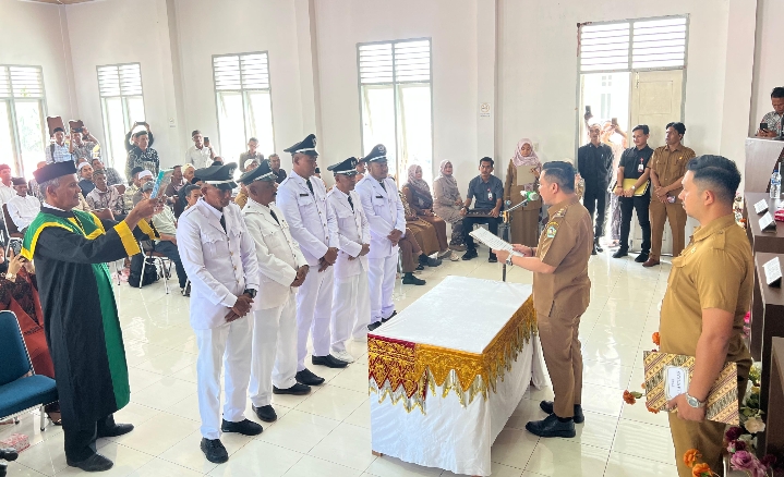 Sigli,haba RAKYAT I Wakil Bupati Pidie, Alzaizi, melantik dan menyampaikan sambutan dan arahannya pada Pelantikan dan Serah Terima Jabatan Keuchik Gampong dalam Kecamatan Tangse, yang berlangsung di Mess Pemda Kecamatan Tangse, Senin (13/10/2025).
