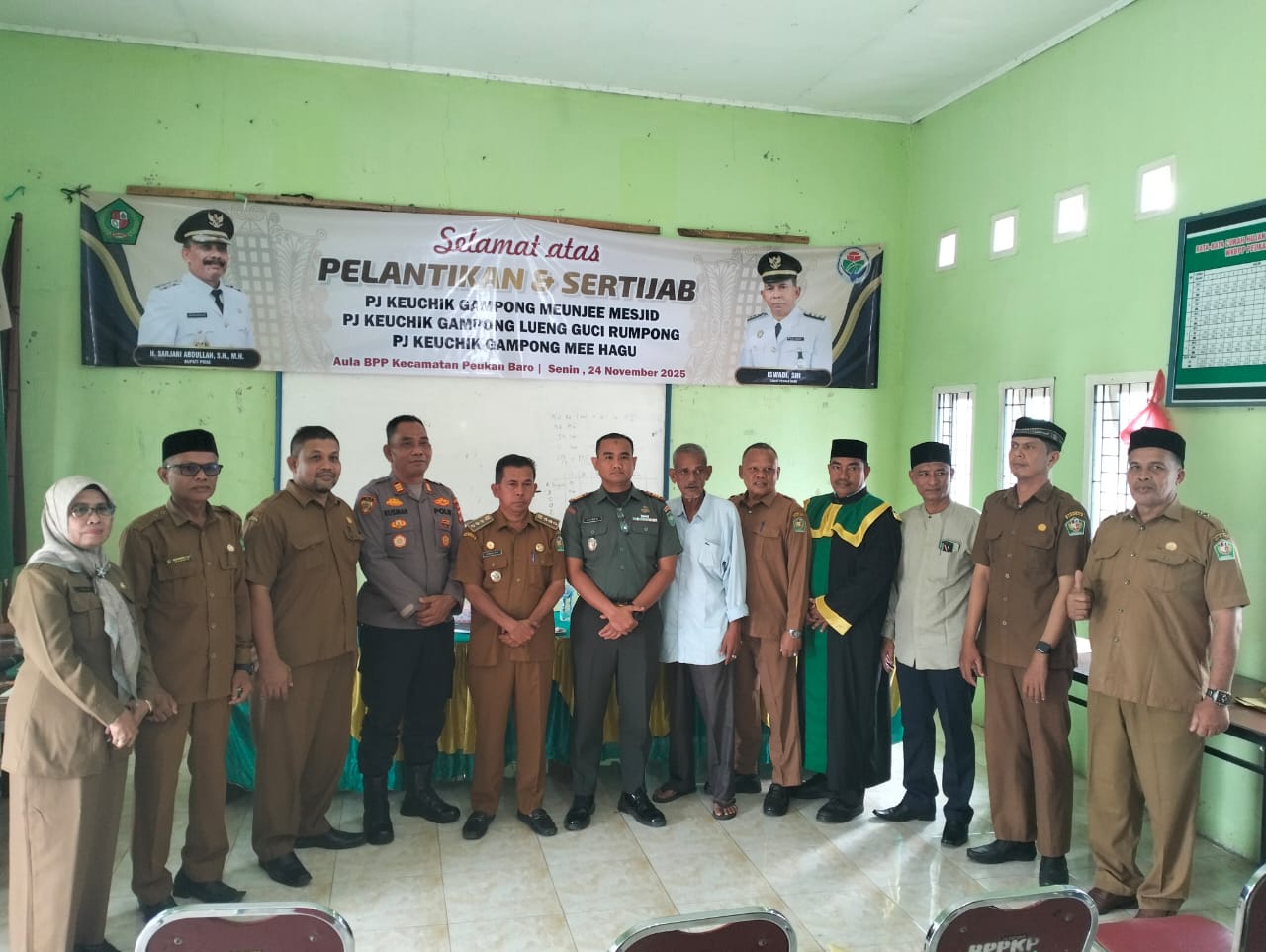 Ketiga Pj yang dilantik yaitu Suryadi, S.E., sebagai Pj Keuchik Meunjee Mesjid, Zulkarnaini, S.Hi., sebagai Pj Keuchik Mee Hagu, serta Jamhur, sebagai Pj Keuchik Lueng Guci Rumpong. Ketiganya ditetapkan untuk menjalankan pemerintahan gampong hingga terpilih dan dilantiknya Keuchik definitif.