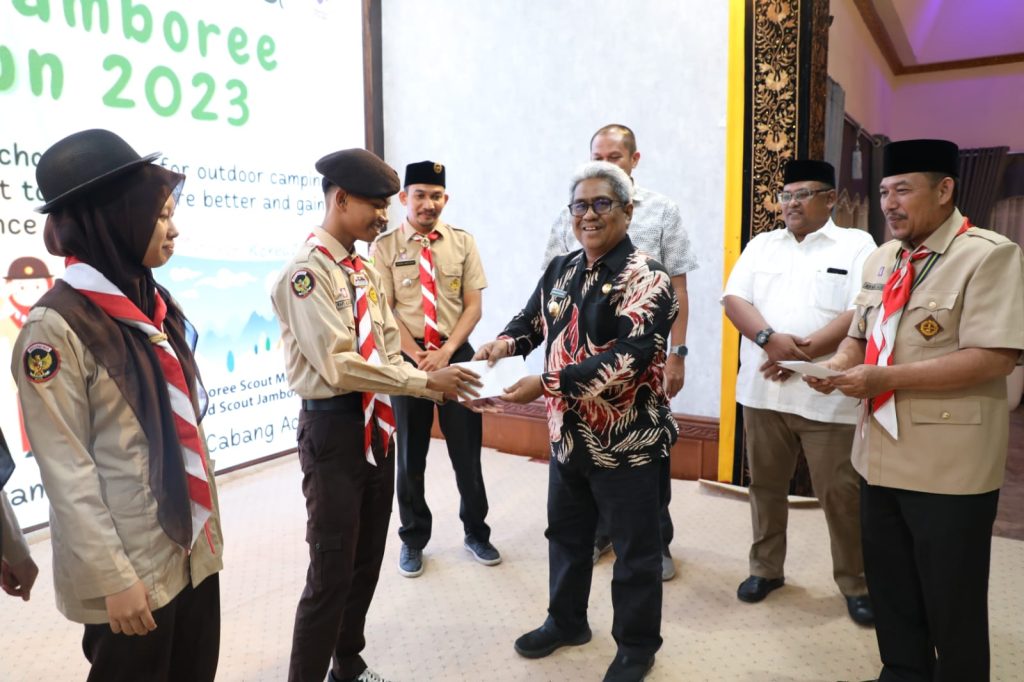 Pj Bupati Mahyuzar dalam sambutannya menyampaikan bahwa pihaknya merasa bangga dengan prestasi ketiga duta Pramuka yang akan menuju ke Korea Selatan untuk mengikuti jambore internasional.