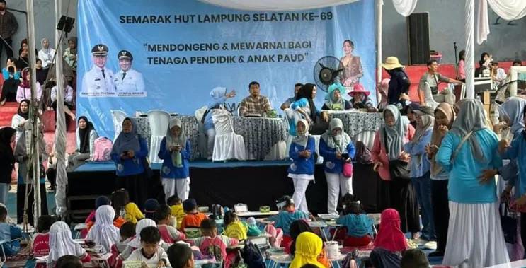 LAMPUNG SELATAN – haba RAKYAT | Dinas Pendidikan melalui Bidang Pendidikan Formal dan Nonformal memeriahkan peringatan Hari Ulang Tahun (HUT) ke-69 Lampung Selatan dengan menghadirkan rangkaian kegiatan edukatif untuk anak usia dini dan tenaga pendidik PAUD.