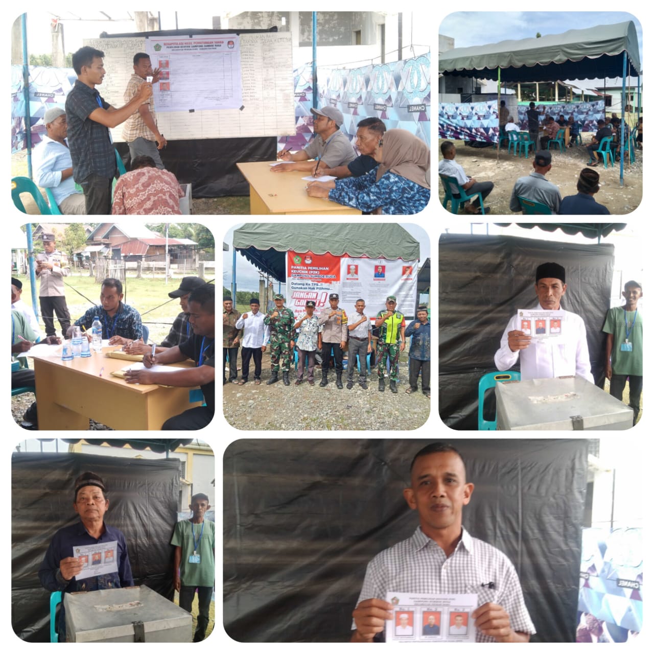 Danramil 06/Peukan Baro, Kapten Inf A. Fitra Nugraha, juga menyatakan, “Pemilihan telah selesai, kini saatnya bersatu membangun gampong. Perbedaan pilihan adalah bagian dari demokrasi, namun persatuan adalah kunci untuk memajukan Gampong Sumboe Buga.”