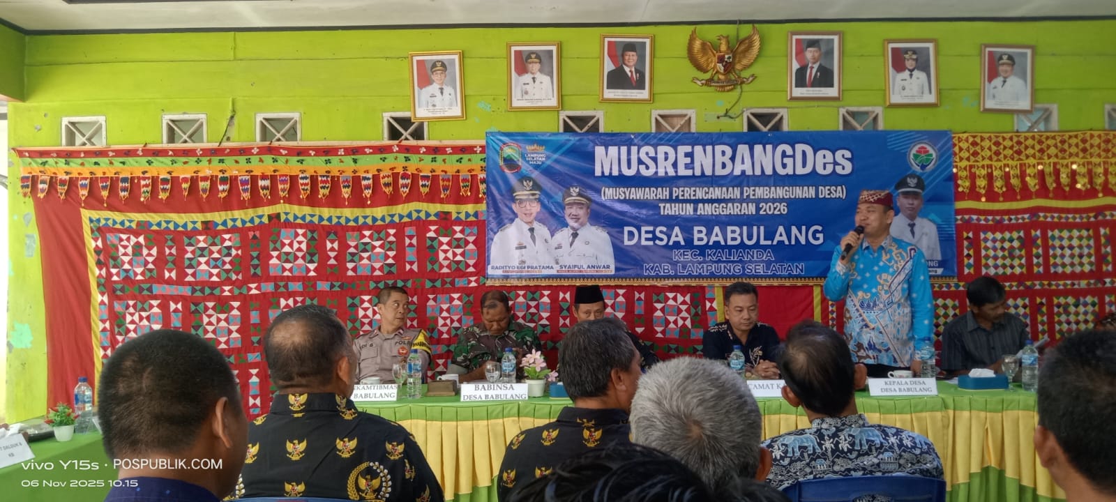 Hal itu disampaikan saat menghadiri kegiatan Musyawarah Perencanaan Pembangunan Desa (MusrenbangDes) Tahun Anggaran 2026 di Desa Babulang, Kecamatan Kalianda, kamis (6/11/2025).