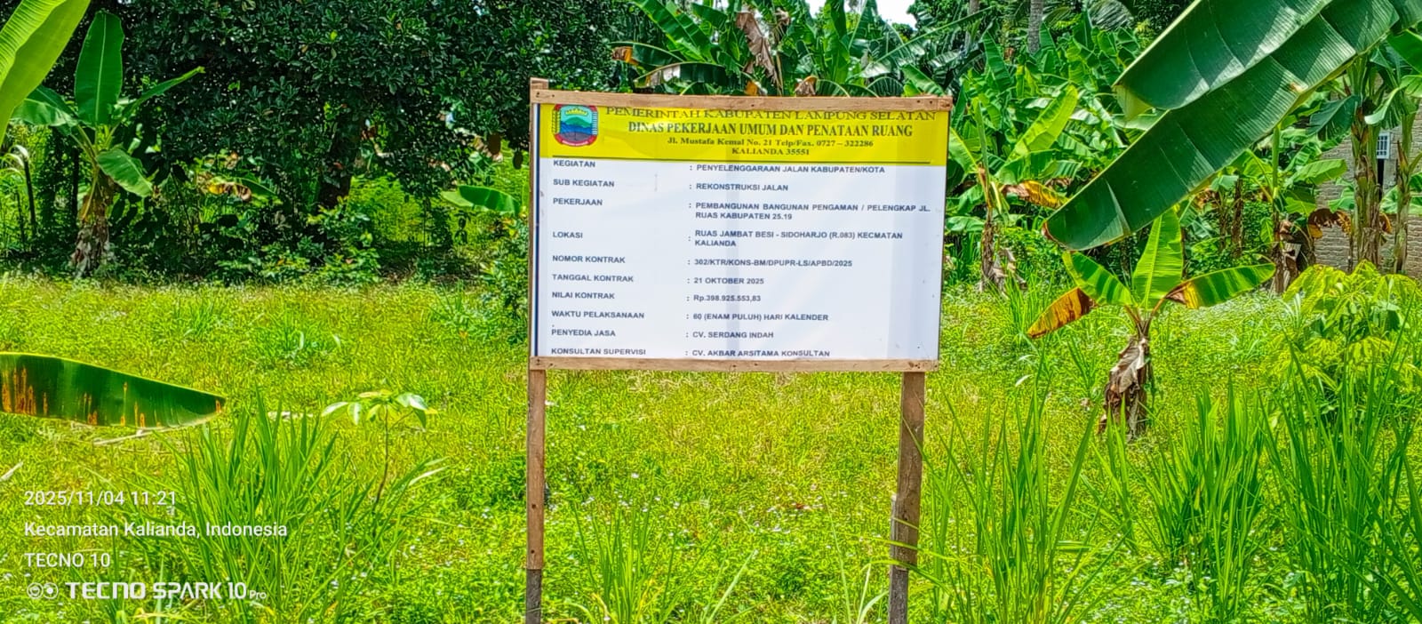 Nama Pekerjaan: Rekonstruksi Jalan pembangunan Bangunan pengaman/ perlengkapan jalan ruas kabupaten.Ruas Jambat Besi–Sidoharjo (R.083) Kecamatan Kalianda.