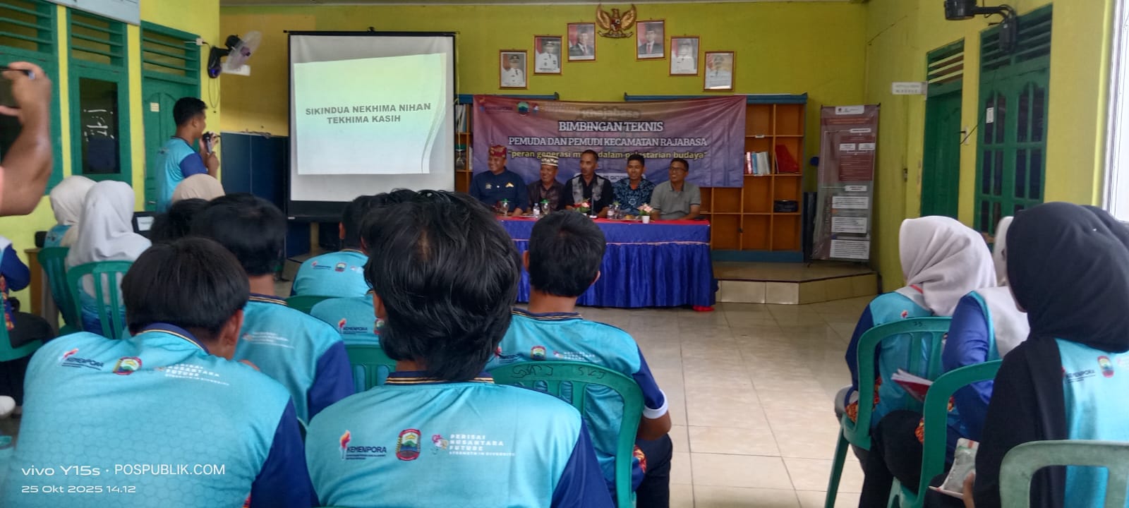 LAMPUNG SELATAN – haba RAKYAT | Dalam upaya menumbuhkan kesadaran generasi muda terhadap pentingnya melestarikan budaya daerah, para pemuda dan pemudi Kecamatan Rajabasa mengikuti kegiatan Bimbingan Teknis (Bimtek) bertema “Peran Generasi Muda dalam Pelestarian Budaya”, yang digelar di Aula Kantor Desa Sukaraja, Kecamatan Rajabasa, Kabupaten Lampung Selatan, Sabtu (25/10/2025).
