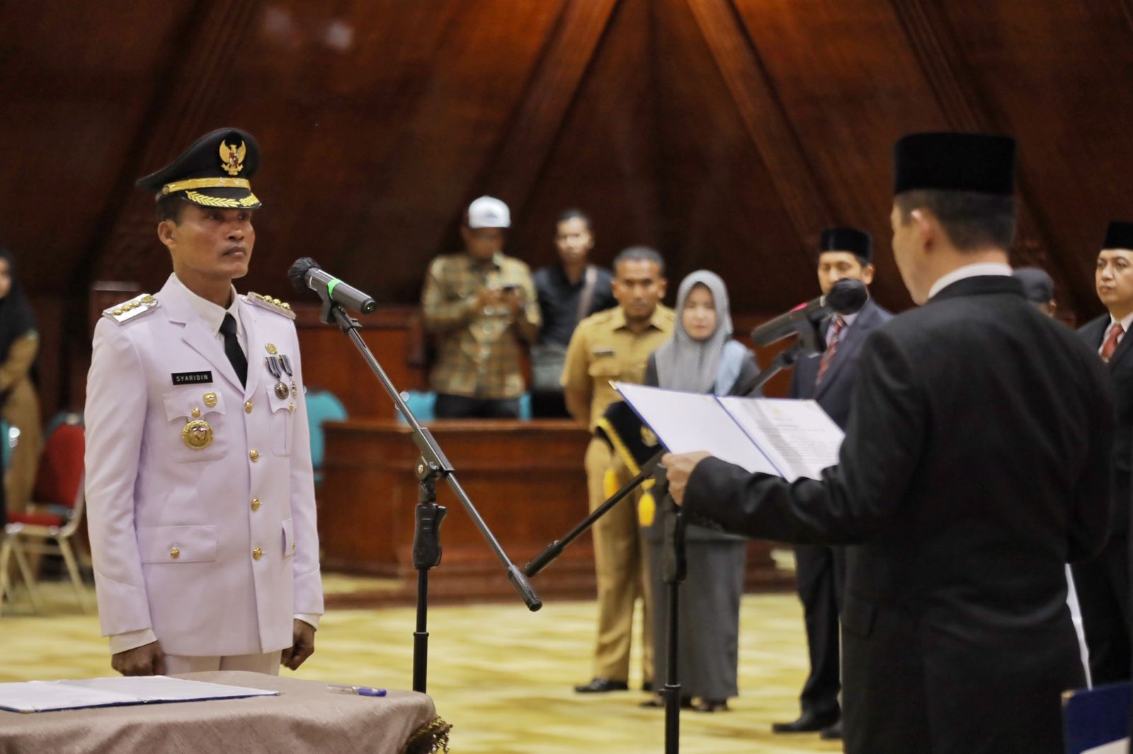 Penjabat (Pj) Gubernur Aceh, Achmad Marzuki, melantik Syaridin sebagai Pj Walikota Langsa untuk setahun masa jabatan, di Anjong Mon Mata Komplek Meuligoe Gubernur Aceh, Selasa, (29/8). Foto/hR/Biro Adpim Setda Aceh.