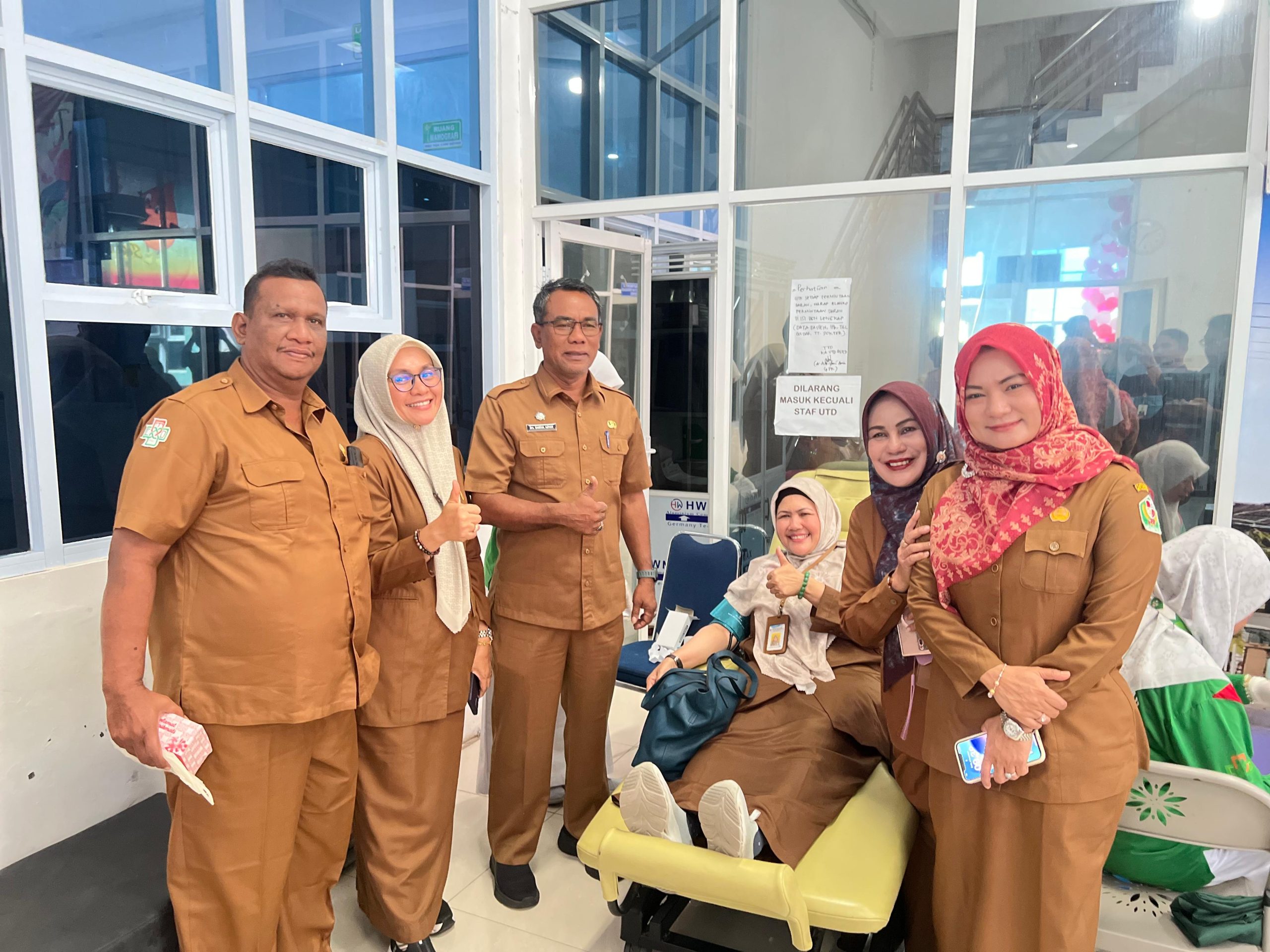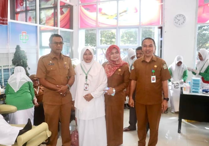 Sekda Samsul Azhar, yang didampingi oleh Direktur RSUD TCD Sigli, drg. Mohd. Riza Faisal, MARS., para Wakil Direktur, Kabag Pemerintahan Almanza, S.STP., serta Koordinator Kegiatan, dan Khairina, S.ST., M.K.M., turut meninjau berlangsungnya proses donor darah.