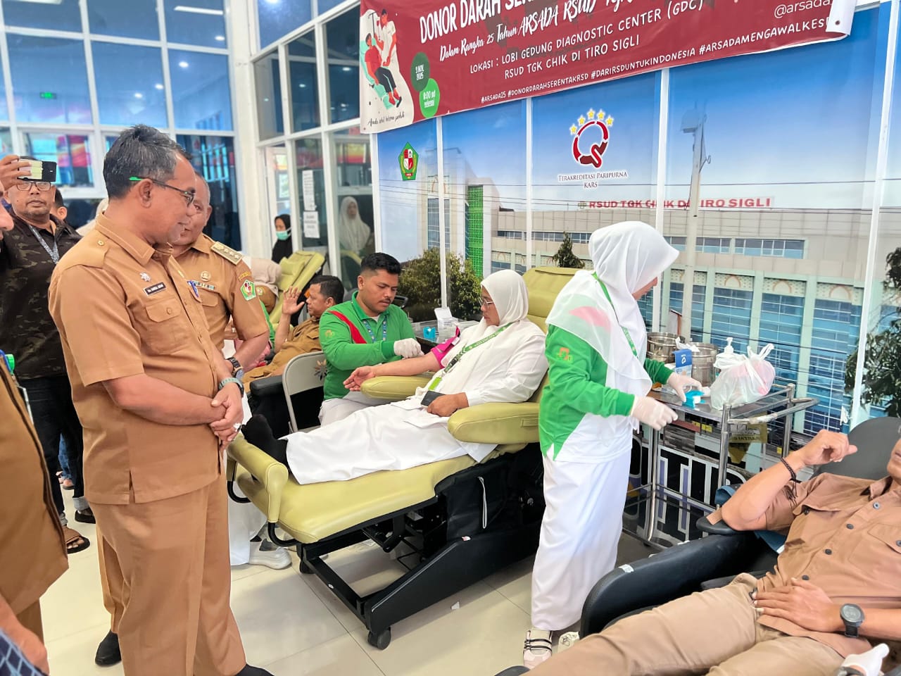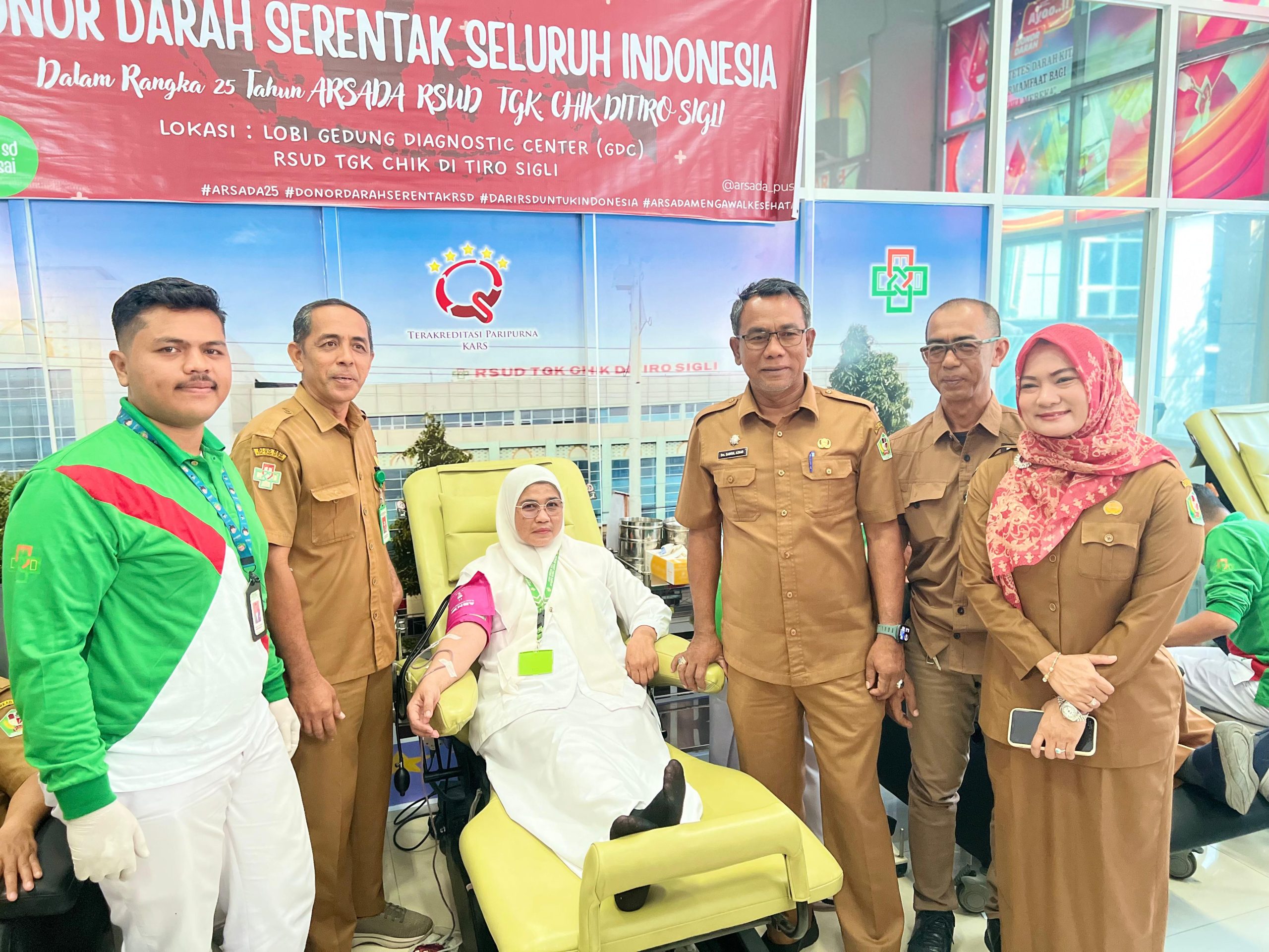 Sigli,haba RAKYAT I Rumah Sakit Umum Daerah Tgk Chik Ditiro (RSUD TCD) Sigli, Senin (03/11/2025) menggelar donor darah dalam rangka memperingati Hari Jadi ke-25 Asosiasi Rumah Sakit Daerah (ARSADA). Donor darah serentak di seluruh Indonesia ini dilaksanakan sebagai bentuk bakti sosial dari rumkit dalam wadah asosiasi rumah sakit daerah tersebut.