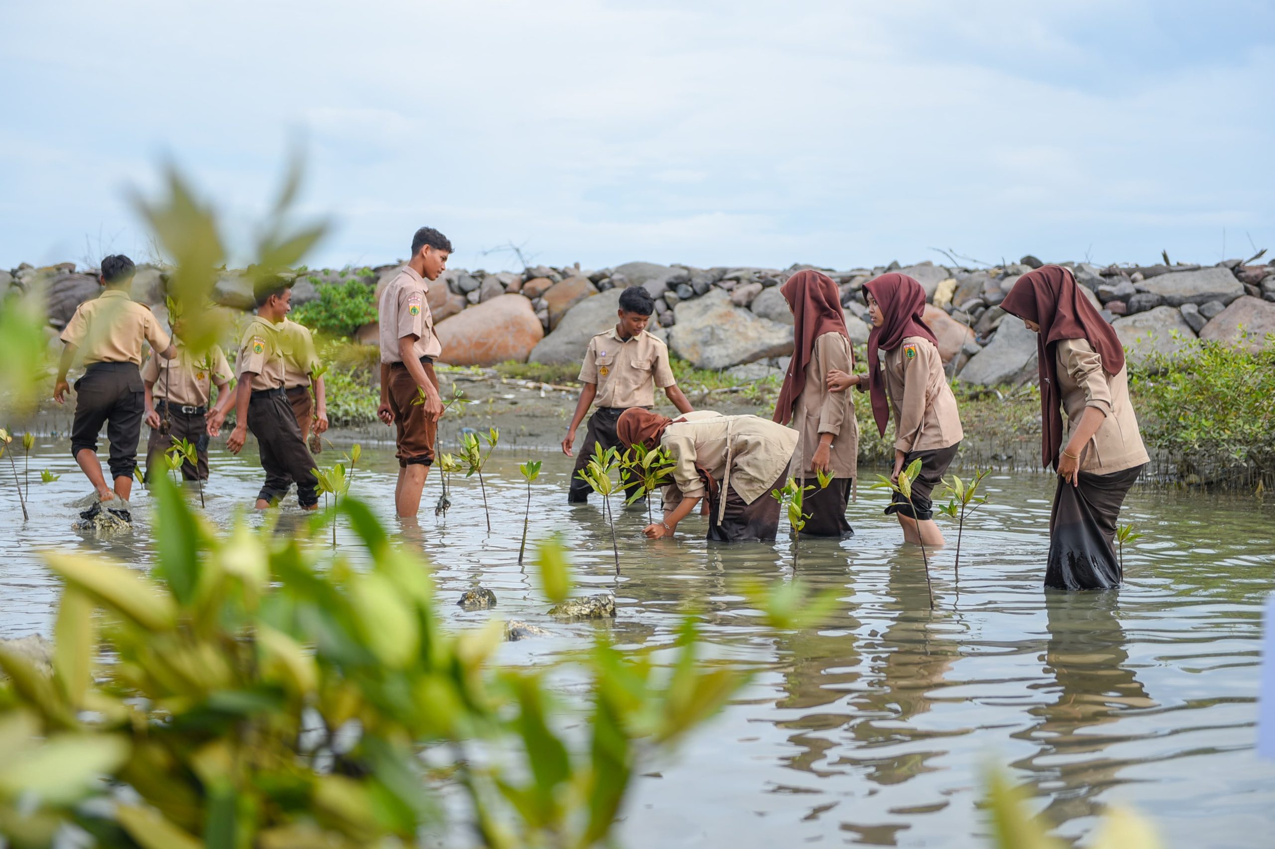 Penanaman bibit mangrove dilakukan secara simbolis oleh Wakil Bupati Alzaizi dan diikuti oleh Rektor Unigha Sigli, Dr. H. Heri Fajri, M.Pd., Kepala DKP, Safrizal, S.STP, M.Ec.Dev., Kepala DLH, Firman Maulana, S.STP, M.AP., serta anggota Racana Pramuka kampus se-Aceh dan para siswa dari berbagai gugus depan pramuka sekolah di Kabupaten Pidie.