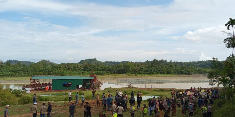 Perusahaan tambang Emas di Aceh Barat PT. Megallanic Garuda Kencana (MGK) pasca insiden penyerbuan lempar batu ke arah kapal pengeruk emas, pada 4 Oktober 2025 yang lalu, akan terus beroperasi penambangannya. Foto : Mardianto/haba RAKYAT.