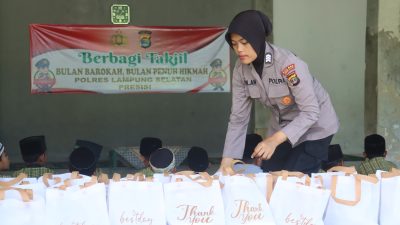 Dalam kegiatan ini, Polres Lampung Selatan membagikan ratusan paket takjil yang terdiri dari makanan ringan dan minuman untuk berbuka puasa. Selain itu, para petugas juga menyempatkan waktu untuk berdialog dengan para santri dan pengurus pesantren mengenai pentingnya menjaga ketertiban selama bulan Ramadhan.