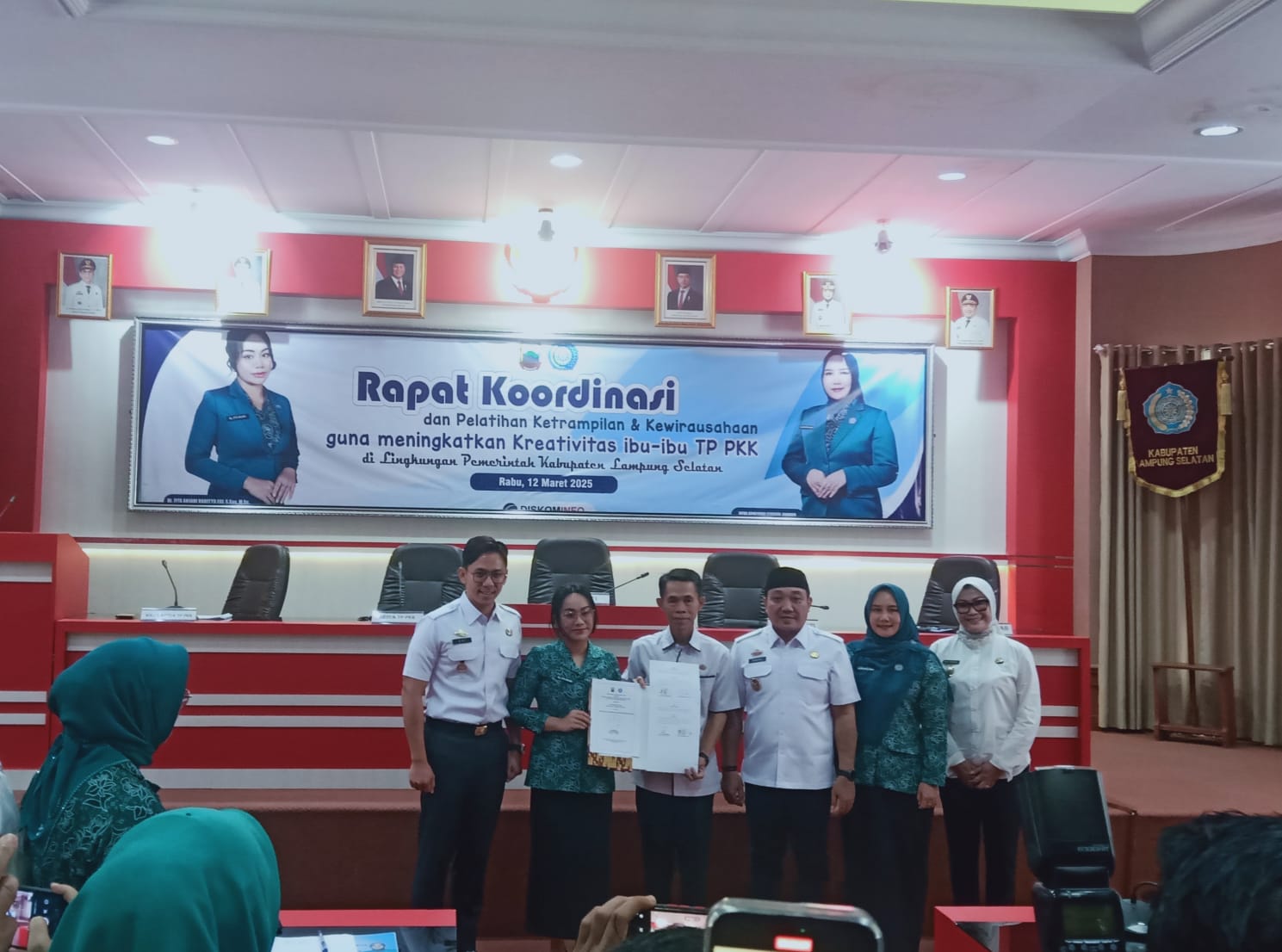LAMPUNG SELATAN – haba RAKYAT | Dalam kegiatan Rapat Koordinasi (Rakor) tim penggerak PKK dan Pelatihan ketrampilan dan Kewirausahaan guna meningkatkan kreativitas ibu-ibu tim penggerak PKK dilingkungan daerah Kabupaten Lampung Selatan dalam periode 2025-2030. Yang diselenggarakan di aula Krakatau di kantor Bupati. Pada hari Rabu (12/3/2025).