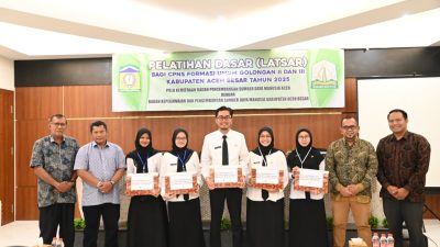 KOTA JANTHO, Haba Rakyat – Sekdakab Aceh Besar Bahrul Jamil S.Sos M.Si berharap CPNS yang mengabdi dalam Lingkup Pemerintah Aceh Besar supaya menjadi Abdi Negara dan Abdi masyarakat yang memiliki moralitas yang baik. “Menjadi Abdi Negara sekaligus Abdi Masyarakat, kita harus memiliki moral yang baik,” pintanya. Hal itu diutarakan Bahrul Jamil saat menutup Kegiatan Pelatihan Dasar Bagi CPNS Formasi Umum di Lingkungan Kabupaten Aceh Besar di Ilona Boutique Hotel, Gampong Meunasah Manyang PA, Kecamatan Ingin Jaya, Aceh Besar, Sabtu (08/11/2025).