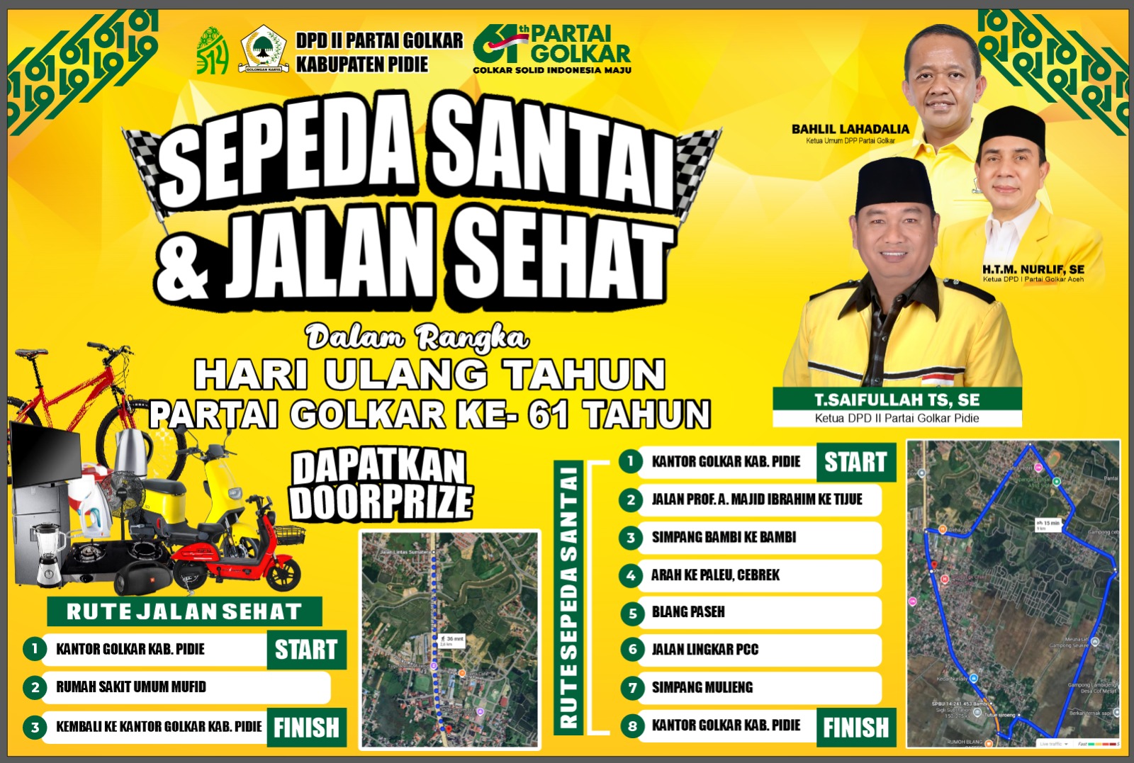 Sebagai informasi, pada 8 November 2025 nanti, masih dalam rangkaian HUT ke-61 Partai Golkar, sebagai acara penutup akan digelar pentas seni dan Budaya (Meuseuraya) bertempat di gedung Pidie Convention Center (PCC) Sigli.