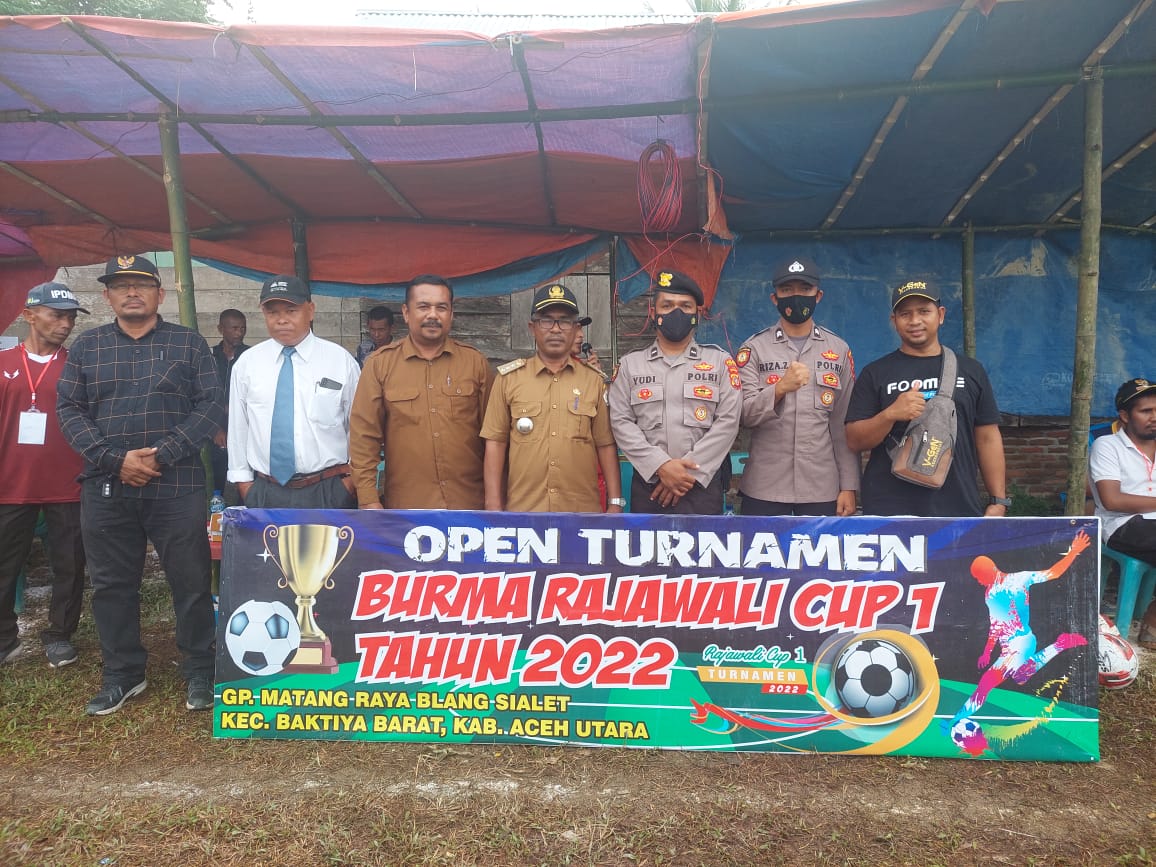 Aceh Utara, haba RAKYAT | Camat Baktiya Barat Aceh Utara, Mazinuddin, S.Sos membuka secara resmi Turnamen Sepakbola Burma Rajawali Cup Tahun 2022, di lapangan sepakbola Matang Raya Blangsialet, Baktiya Barat, Senin (01/08).