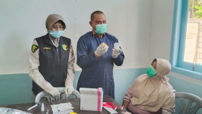 Polres Lampung Selatan bersama UPT Puskesmas Candipuro menggelar pemeriksaan kesehatan menyeluruh bagi penjamah pangan di Desa Rawa Selapan, Kecamatan Candipuro, Lampung Selatan. Foto : Beddi Rizal/haba RAKYAT.