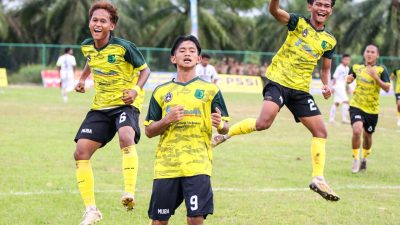 Tim sepakbola bola Musi Banyuasin (Muba) menang telak melawan Pali dengan score 7-0, berlangsung di di Lapangan Hindoli Sungai Lilin, Sumatera Selatan. Foto : Sherly Pradia/haba RAKYAT.