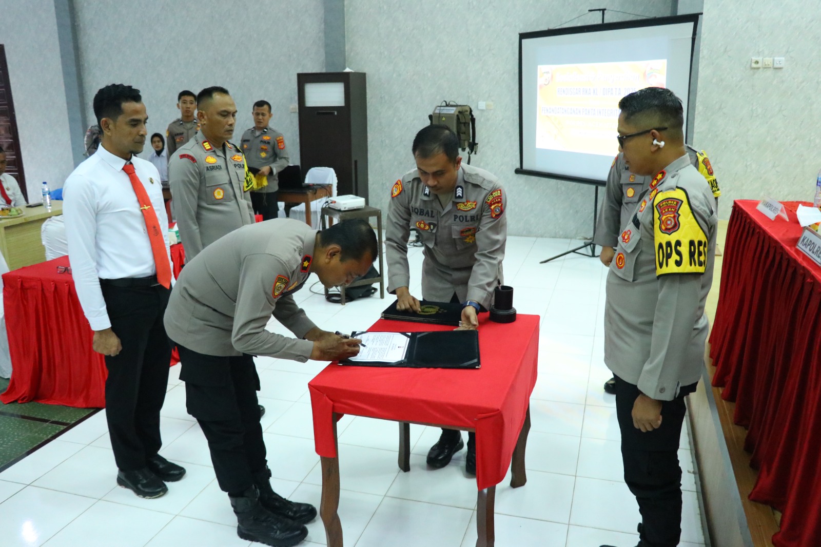 Tak hanya itu, sebagai bentuk komitmen untuk menjaga integritas dalam penggunaan anggaran, dilakukan pula penandatanganan Pakta Integritas oleh para Kabag, Kasat, Kasi, dan Kapolsek jajaran.