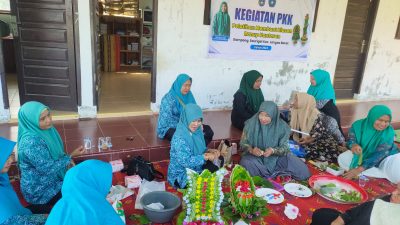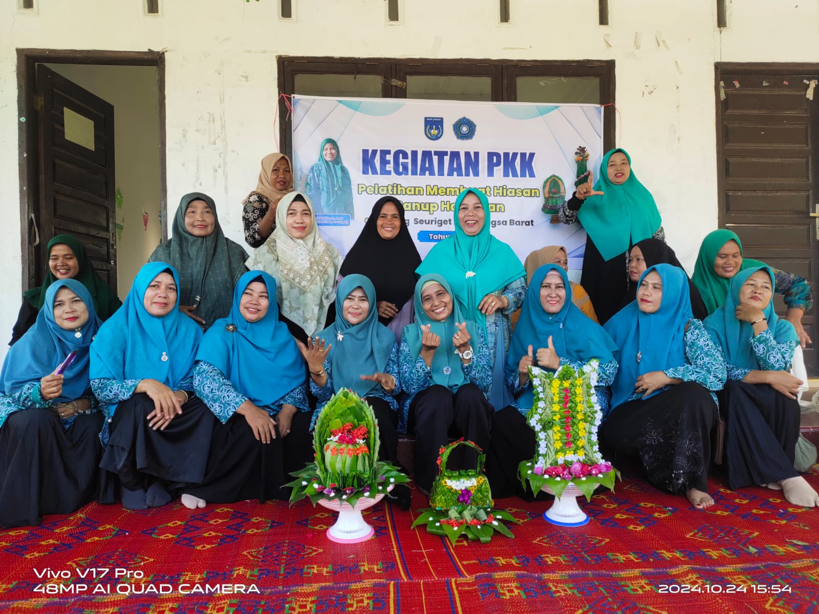 Pelatihan membuat hiasan ranup hantaran atau merangkai sirih, Kamis 24 Oktober 2024 oleh TP PKK Gampong Seuriget. Foto : Edd/haba RAKYAT.