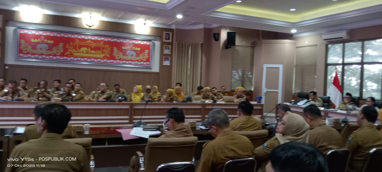 Pemerintah Kabupaten (Pemkab) Lampung Selatan mengelar rapat Pemantapan dan Evaluasi Program Pemberantasan Korupsi (MCSP & SPI) Tahun 2025, yang dihadiri langsung oleh Wakil Bupati M. Syaiful Anwar bersama tim Komisi Pemberantasan Korupsi (KPK) RI berlangsung di Aula Krakatau, Lampung Selatan. Foto : Beddi Rizal/haba RAKYAT.